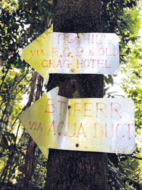 The trail starts at the main entrance to the Penang Botanic Gardens. We turned right and walked until we reached the orchid house, (which was closed as usual), and followed the path on our right, signposted to the Lily Pond. The Lily Pond has always been my favourite spot in the Botanic Gardens – peaceful, beautiful and shady – but until we started our hiking adventures, I had never noticed the signs tacked to a tree: to Mount Olivia, 46 and 84. These signs and quite a lot of others on the paths around this side of Penang Hill are marked LYK. LYK, sometimes known as Forest Lim, a keen hiker, marked out many trails a few years ago. Sadly the signs are already suffering from the weather and some are quite difficult to read now.