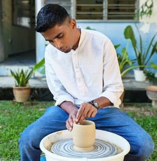 From my visits to Balik Pulau, I remember soft sunlight over the hills, the scent of earth and sea mingling as well as small streets lined with fruit trees. Thanesh’s daily routine includes kneading clay, shaping forms and walking the surrounding countryside for inspiration, engaging in a quiet cycle of creation. Watching Thanesh work in this environment, it is clear how space and environment shape his craft and days. For him, leaving “depends very much on individual interests and personal goals. I chose to live far from my family because of my ambition to become a full-time artist. There were sacrifices, yes, but sometimes you have to let go of comforts to grow and pursue what truly matters.”