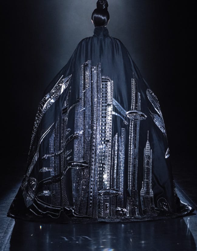RY: I recently watched your latest collection, and the first piece was a gorgeous cape studded with diamonds to create a glittering city. Can you tell me about it?